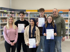 Besonders erfolgreich schnitten in diesem Jahr fünf Schülerinnen und Schüler des 8. Jahrgangs ab: Auf gymnasialer Ebene sicherte sich Luna Trabes (8.4) den ersten Platz und qualifizierte sich damit für die zweite Wettbewerbsrunde. Ebenfalls eine Runde weiter kamen Rayan Bansefat (8.1) und Mario-Constantin Deaconu (8.3) auf Realschulebene. Im C-Kurs erzielten Amel Calakovic und Maram Haji, beide aus der Klasse 8.2, die höchste Punktzahl.
